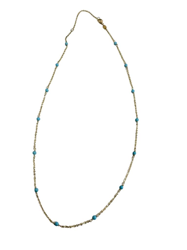 Description : 18KY Italian Contemporary Beads Turquoise Necklace - 2.5GRAM